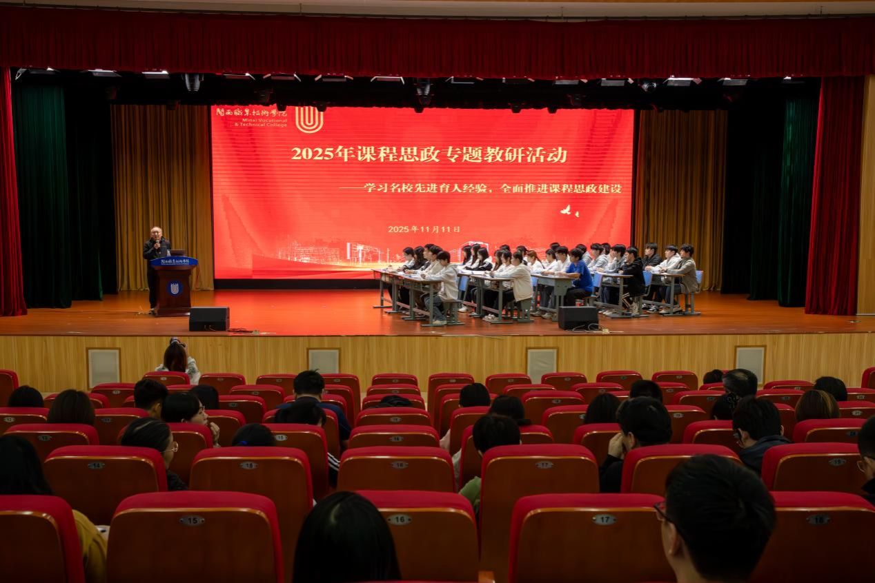 为深化课程思政教学改革,强化课堂教学育人功能,MG冰球于2025年11月11日举办课程思政教研专题教研活动。活动特邀广东省级课程思政示范课程负责人、广州职业技术大学陈惠红教授进行《Web前端开发技术》示范课教学。副校长张源峰、教务处负责人及全体任课教师(含专任、校内兼课及校外兼职教师)参加了此次活动。