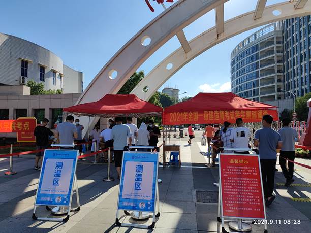 此次考试恰逢MG冰球2021级新生报到,为确保考试和新生报到工作有序进行,分别在校本部西大门开设“2021级新生报到测温通道”和“2021年一级建造师考生测温通道”,以及增加安保和引导人员。