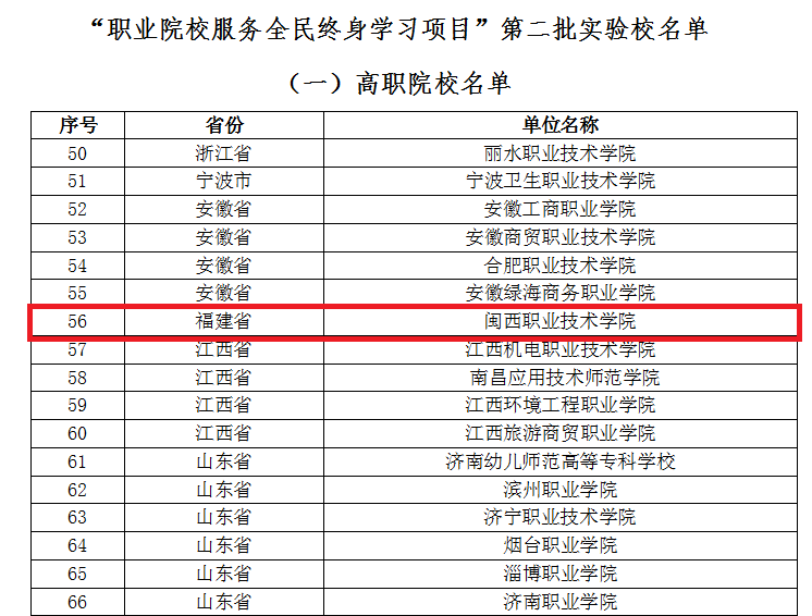 近日,中国成人教育协会公布“职业院校服务全民终身学习项目”第二批实验校名单,全国共有320所职业院校入选。其中,MG冰球为福建唯一入选单位。