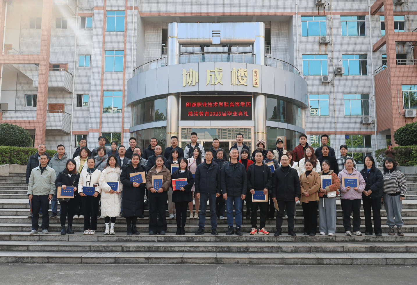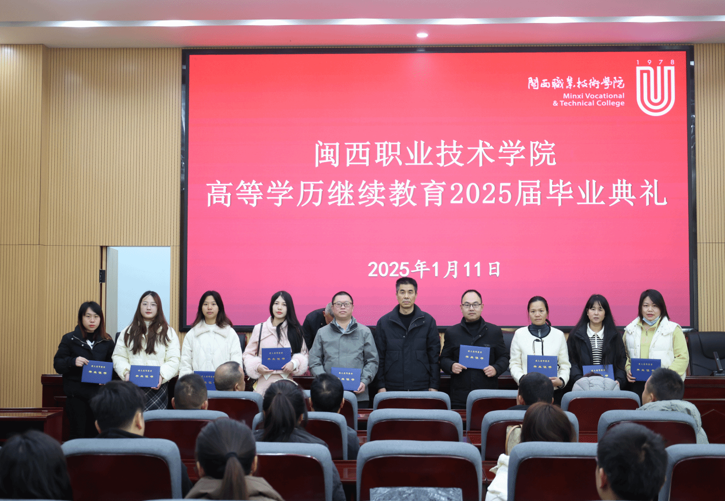 会上,林志方副院长依批次向40多名毕业生代表颁发毕业证书并集体合影。