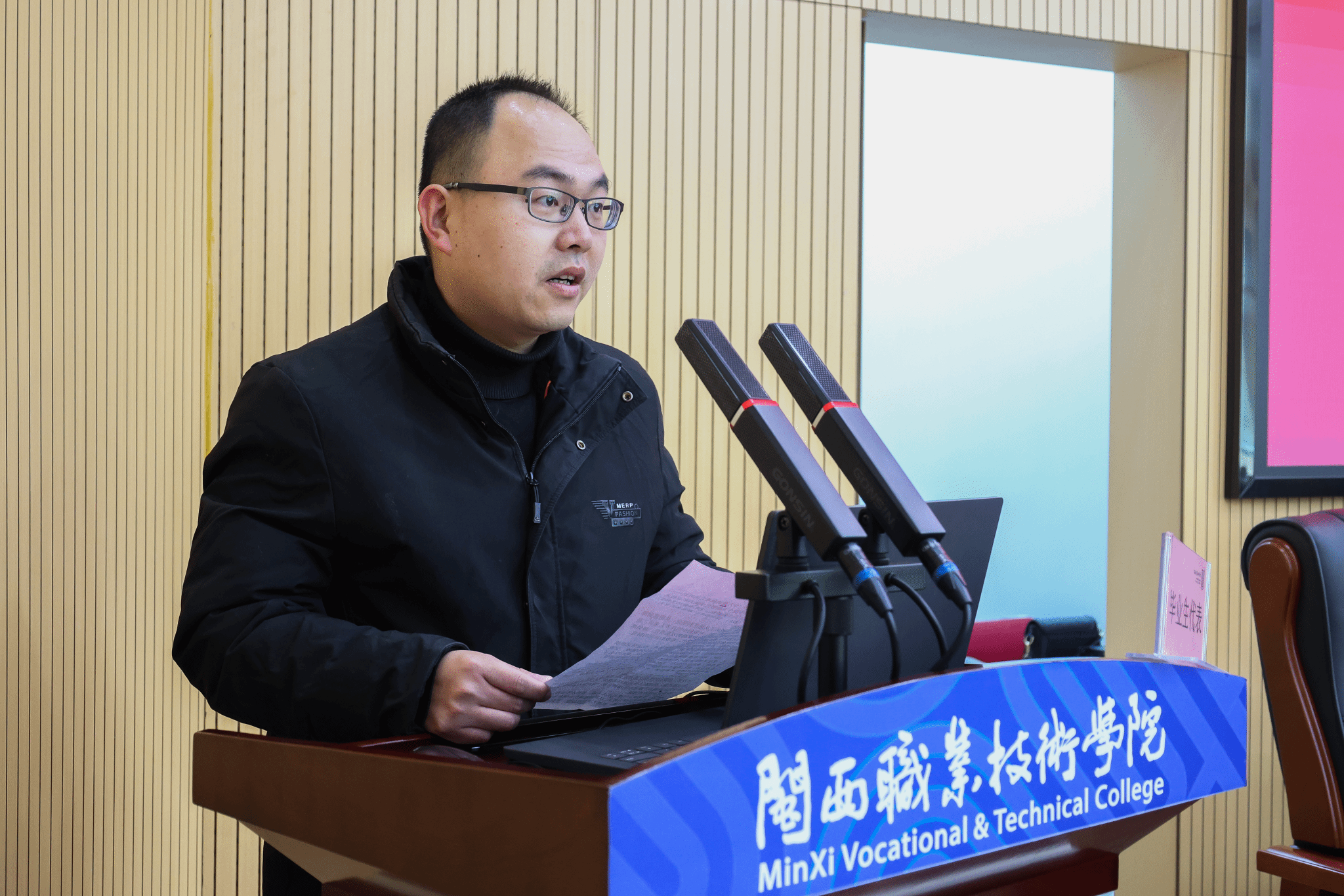 毕业典礼上,2025届计算机应用技术专业廖建新同学,班主任代表郭惠娟老师,分别代表毕业生、老师也进行了精彩的发言。