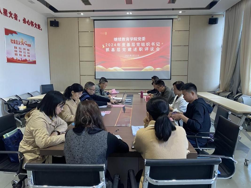 3月11日上午,继续教育学院党委在校史馆一楼会议室召开2024年度基层党组织书记抓基层党建述职评议会。继续教育学院党委委员、基层党组织书记、支部委员参加了会议。会议由党委书记钟加殿同志主持。