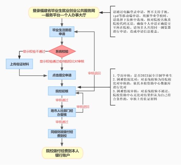 毕业生求职创业补贴申请审核流程图