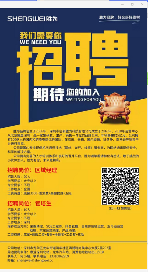 深圳创新胜为科技有限公司招聘
