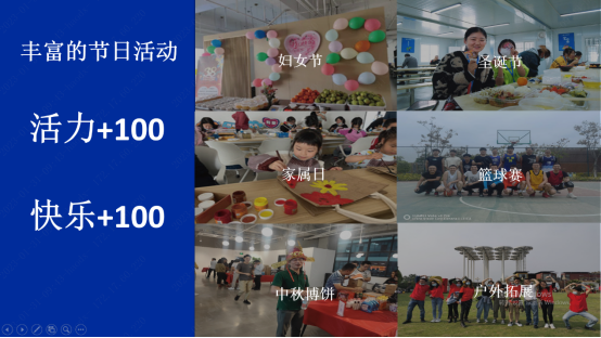 • 丰富的员工活动——为员工提供丰富的文娱活动如羽毛球俱乐部、篮球俱乐部、音乐俱乐部、户外俱乐部等