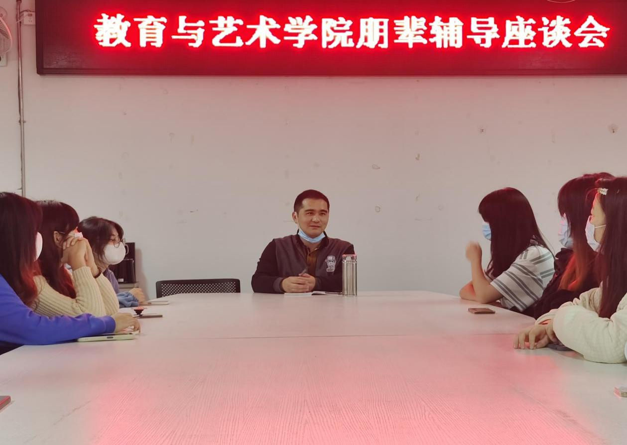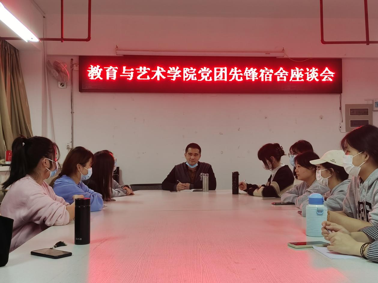 2022年4月19日,教育与艺术学院在教学综合大楼810会议室召开党团先锋宿舍暨朋辈辅导座谈会,学院党委副书记曹熠城、党团先锋宿舍代表及参加朋辈辅导的学生代表参加。