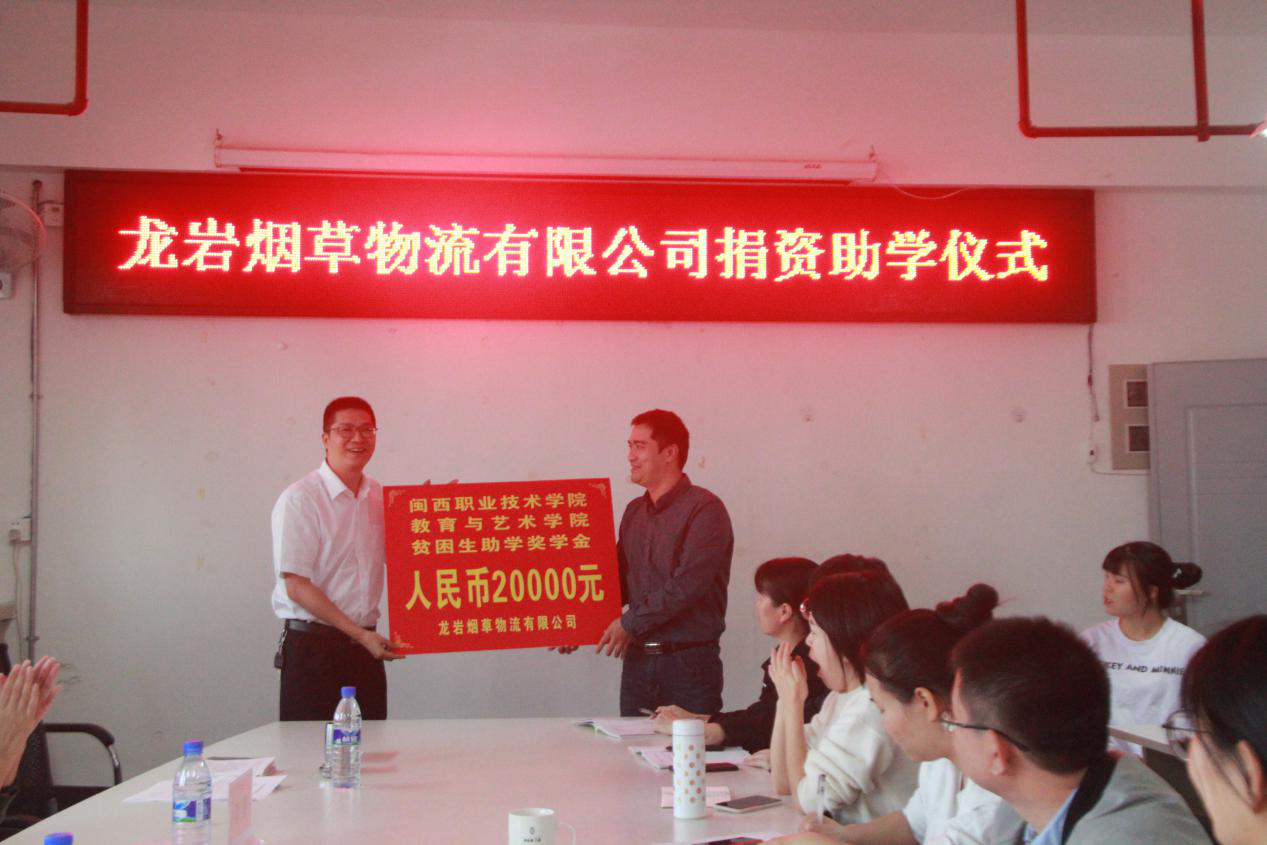 2020年11月4日,教育与艺术学院在教学综合大楼八楼会议室举行龙岩烟草物流有限公司捐资助学仪式。龙岩烟草物流有限公司领导和教育与艺术学院领导、辅导员及受助学生参加此次活动。