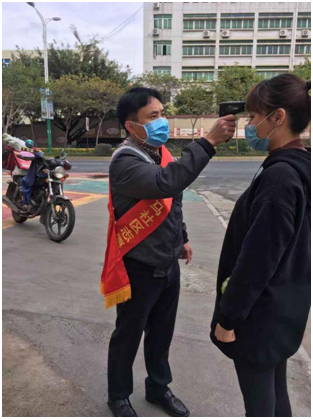 春节前夕,新型冠状病毒感染的肺炎防控战在全国全面打响,在这场没有硝烟的战斗中,在闽院天马校区教职工生活区门口,他协助天马社区工作人员迅速配合社区设卡检查,本着“轮流换岗不空岗的原则”,不停歇地“逢车必拦、逢人必问”。他一辆车接着一辆车的认真检查、认真登记,仔细盘问;一个一个对行人进行体温检测;一遍一遍、不厌其烦地提醒他们:“出门请带好口罩,车内尽量保持通风”。遇到不配合的人员,他就耐心的安抚,不厌其烦的解释,也不会放过一辆车辆。有人问他:“站在路口接触那么多人,就不怕被传染吗?”他笑着说:“我是党员,要用自己的实际行动,践行共产党员的初心和使命。他坚守岗位,用敬业和奉献,为天马校区居民的健康安全筑起防线,成为冬日里最动人的风景。