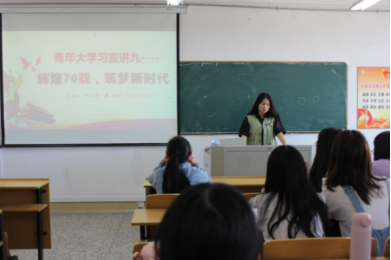 本次系团委副书记叶欣欣将此次主题分为“沧桑巨变70年”、“中国进入社会主义新时代”、“迈向高发展之路”、“筑梦新时代”四大部分进行宣讲。