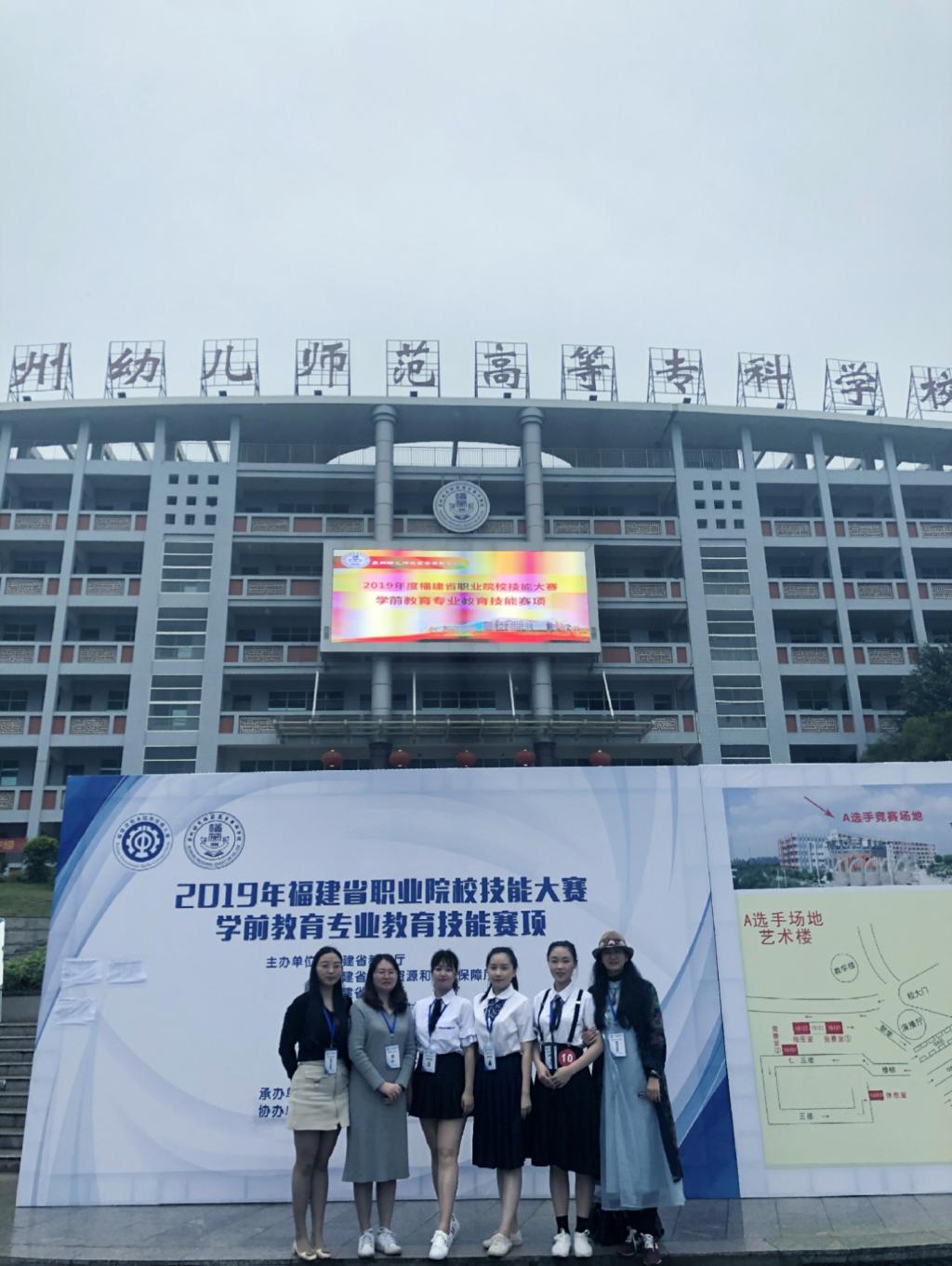 4月18日至19日,2019年全省职业院校高职组“学前教育专业教育技能大赛”在泉州幼儿高等专科学校隆重举行。由我系党员老师李文春、黄翠宝、吴丽婷带队和指导的学前教育专业张佳莹、陈龄、邓恬娟三位同学凭借扎实精湛的专业技能和沉着冷静的现场发挥,圆满完成竞赛项目,最终创造佳绩,获得了学前教育专业教育技能大赛全省团体第三名(省赛二等奖)。