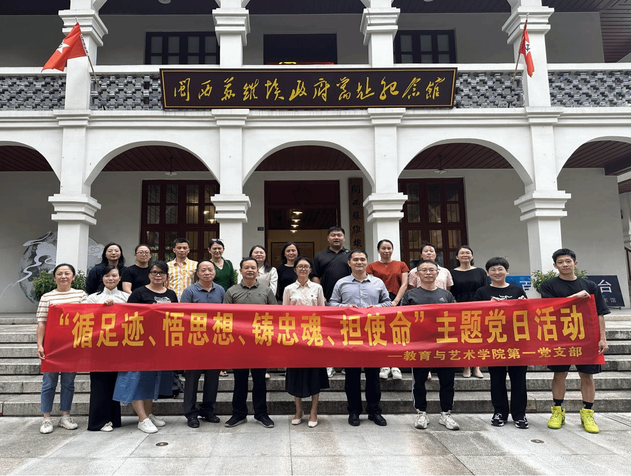 为深入学习贯彻党的二十大精神,推动“深学争优、敢为争先、实干争效”行动落地见效,引导广大党员干部学思想、强党性、重实践、建新功。2023年10月10月,教育与艺术学院第一党支部前往闽西苏维埃政府旧址开展“循足迹、悟思想、铸忠魂、担使命”主题党日活动。
