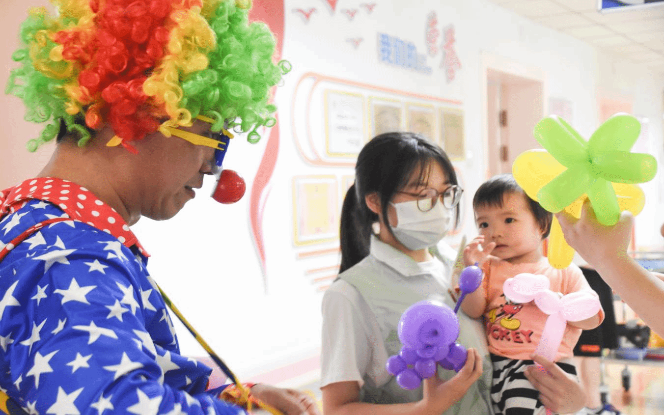 志愿者们用一双双灵巧的手,做成了一个个形态各异的手工气球。随后为小朋友们发放了五颜六色的手工气球,并为他们送上最诚挚的祝福。“我好喜欢这个气球小狗,谢谢姐姐!”一位患儿抱着节日礼物露出了开心的笑容。志愿者们不仅给住院的小朋友派发礼物,还给孩子们表演富有童趣的舞蹈,并一一来到病房陪他们一起唱童谣,带给他们温馨与欢乐。孩子们也表现出极高的热情,不一会儿就与志愿者们打成一片,病区里充满了欢笑声和嬉闹声,驱散了病房中的阴郁气氛。在我院青年志愿者的陪伴下,医院里就医的孩子们度过了一个快乐且特别的“六一”节。