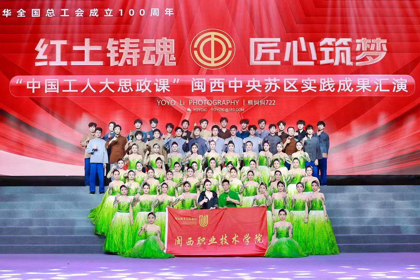 2025年4月30日,在中共龙岩市宣传部、龙岩市总工会主办的“红土铸魂 匠心筑梦”——“中国工人大思政”闽西中央苏区实践成果汇演中,MG冰球送演的节目《星火•燎原》《绿水青山》备受赞誉。该节目由教育与艺术学院第一党支部党员教师荣珏、陈郎迪精心编导,学生入党积极分子黄梦露、潘雅思、王梦依等参与演出,生动展现了党建引领下师生共同成长的丰硕成果,成为“红专+”师生共同体立项活动的实践样板。