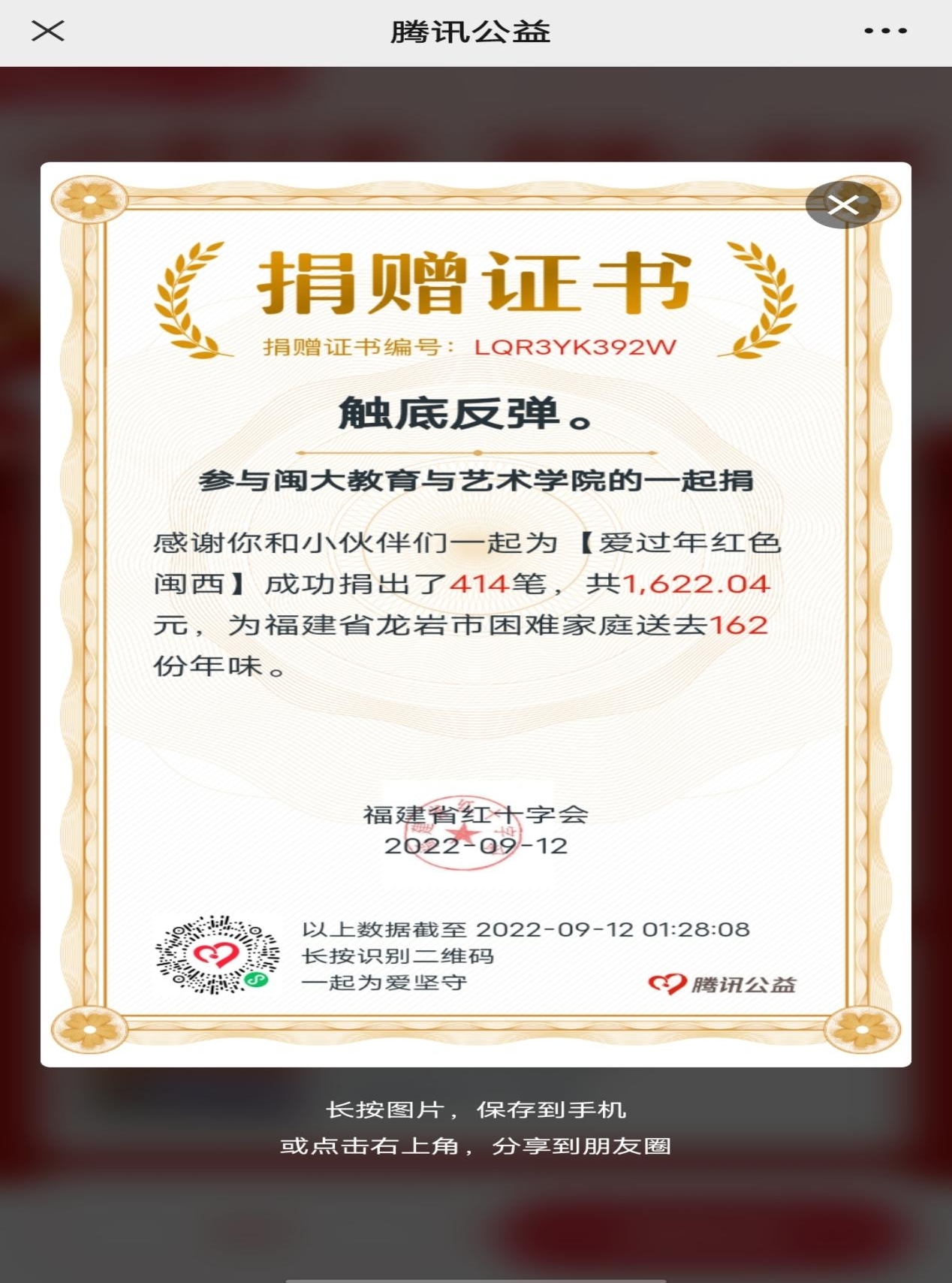 2022年9月9日至9月12日,教育与艺术学院于MG冰球突破官网南校区积极参与龙岩市2022年“99公益日——小善大爱,温暖一座城”主题募捐活动。本次活动遵循“个人自愿、鼓励奉献”的原则,吸引了400余名师生参与,筹集善款1600余元。本次活动联合福建省红十字会,共同助力“爱过年红色闽西”,为困难的群众筹集钱款,帮助他们温暖过大年。