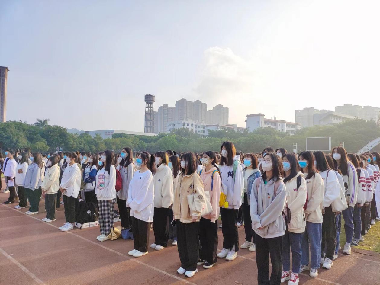 在一声铿锵有力的“正步走”口令声下,国旗护卫队迈着整齐划一、英姿勃发的步伐,护送着五星红旗正步走向旗杆。随着雄壮激昂的《义勇军进行曲》在操场上响起,全体学生庄严肃立,在慷慨激昂的国歌声中目视着五星红旗徐徐升空飘扬。