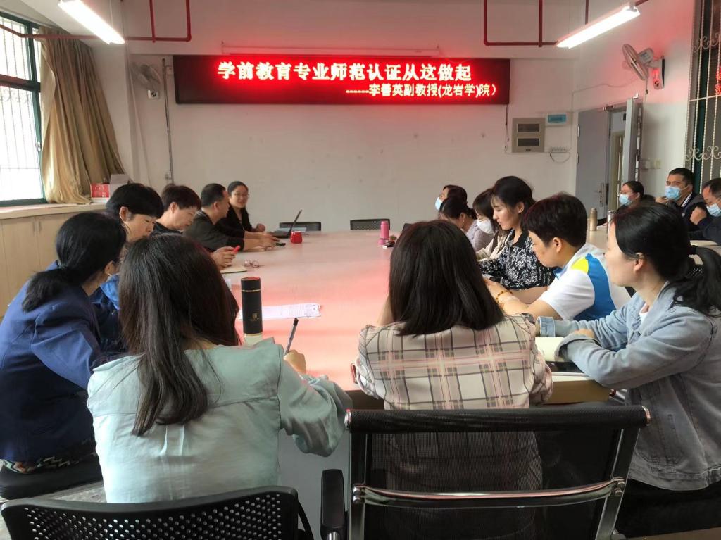 李善英副教授是龙岩学院学前教育专业认证主要负责人,对认证工作比较熟悉,她从实际出发,把龙岩学院学前教育师范认证的宝贵经验向我院相关老师进行分享,现场气氛热烈,老师们跟着李副教授的思路对自己肩负的任务展开讨论,对现行文件做进一步解读,就当前面临的问题做深度解析并提出建议,就老师们的疑惑现场答疑,整场讲座抓重点,找不足,在逐渐深入探讨中寻找新的方向,势必齐心协力,迎难而上,争取在专业师范类认证工作中取得突破。