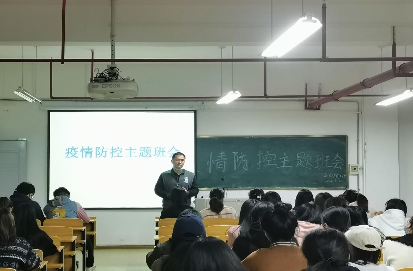 2022年4月2日,我院组织各班级在教学综合大楼召开疫情防控主题班会。院长李文春、党委副书记曹熠城、团委书记钱雪梅、及全体辅导员积极开展。