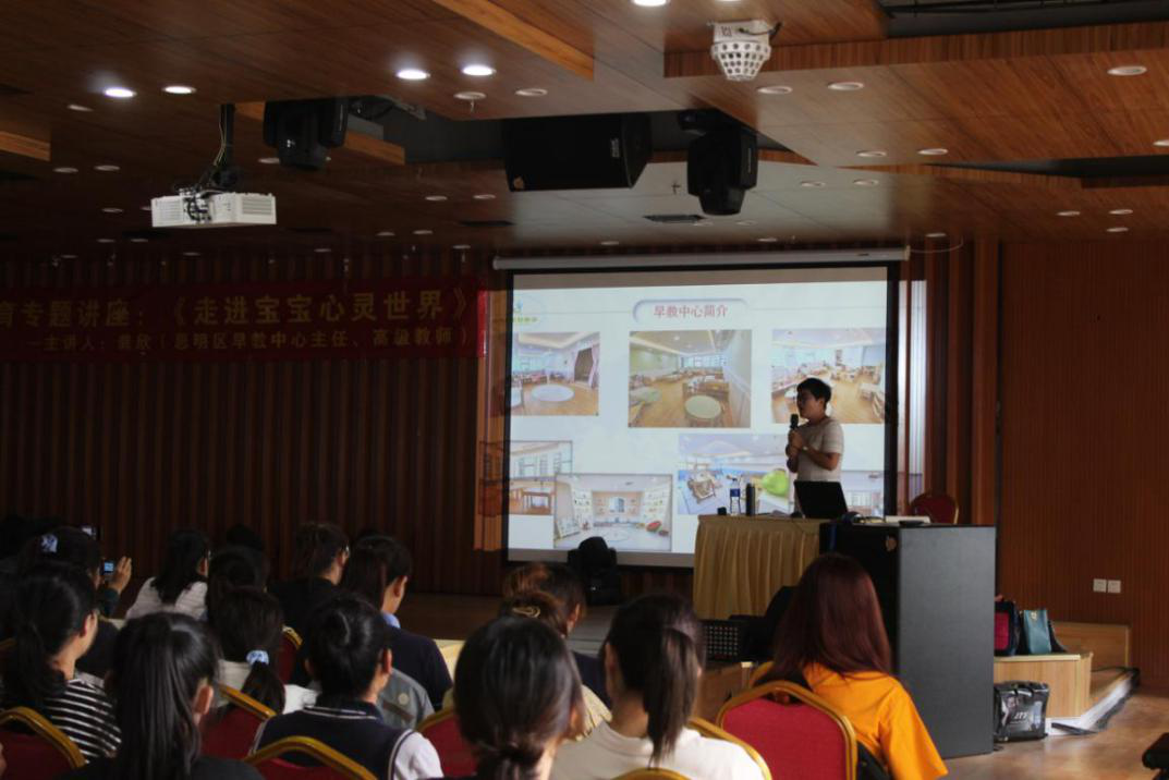 龚欣老师介绍了厦门市对早期教育逐渐重视及出台的一些政策,从“机构中心简介”、“职能介绍”、“课程介绍”、“成果介绍”四个方面讲述了幼儿不同阶段的特点和教育方法。龚欣老师在现场通过图片、视频和互动,深入浅出、生动丰富地呈现了一场精彩的早教讲座。
