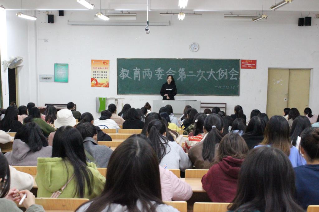 2019年12月27日晚,在良才楼105教室,由学院学生会主席钟倞倞主持召开第二次全体干部干事大会。