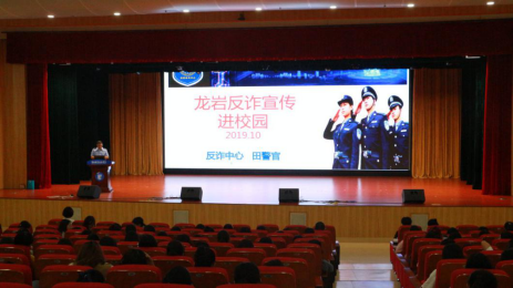为了提高我系师生预防诈骗的能力,增强安全防范意识,切实保护广大师生的财产安全利益。2019年10月17日晚, 教育系在学校大匠堂举行 “增强防骗意识,守护财产安全”的专题讲座,本次讲座特邀龙岩市公安局田大聪警官主讲。教育系党总书记连玲娜、教育系主任李文春、团委书记邹寅将、辅导员胡丹老师、陈玲老师以及教育系18、19级全体学生参加了此次讲座。