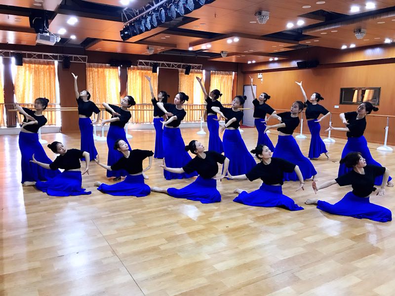我系2016级舞蹈特长生在十楼多功能大厅 勤学苦练基本功