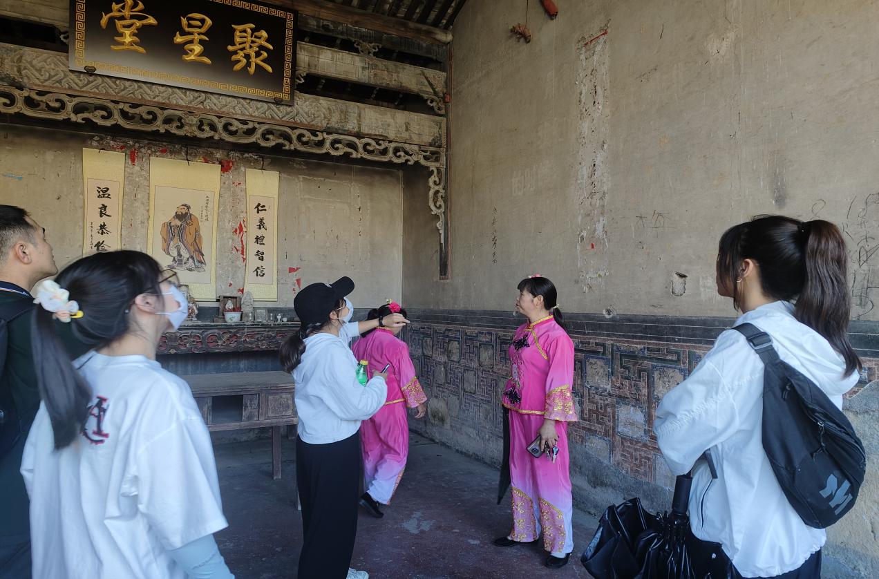 实践队到达黄地村后,当地非遗文化传承者向志愿者们介绍了有关采茶灯的历史,她们还向志愿者们传授了采茶灯表演技巧,让志愿者们更加深入感受到采茶灯的独特魅力。临近饭点,迎来了志愿者们最期待的环节——亲手制作传统美食。按照厨娘阿姨所教的制作步骤,大家分工合作,有的志愿者在制作过程中展现出手艺精巧的一面,获得了大家高度评价。最后在大家的努力下,成功完成了饺子、艾果、酸萝卜等美食。品尝过农家午餐后,志愿者们参观了孝廉文化馆种德居,屋内刻有壁画,主要反映了儒孝仁德的思想,也体现了古村落质朴的魅力,让志愿者们深深感受到种德居浓厚的文化底蕴。结束参观活动后,志愿者们来到农田,进行农耕活动,通过辛勤劳作,体会到劳动人民的不易,进一步理解了劳动的价值。在返校的时候,志愿者们带着自己亲手制作的美食,互相分享着这一天的收获。