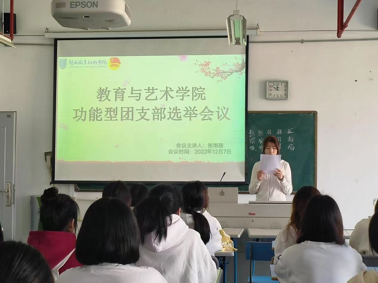 为进一步落实立德树人根本任务,充分发挥团组织对我院学生会组织的思想引领作用,加强院系学生会组织的政治建设。2022年12月7日,教育与艺术学院于岩声楼510举行了功能型团支部选举会议,本次会议由团委副书记张雨珊主持召开,学生会全体学生干部参与了此次选举会议。