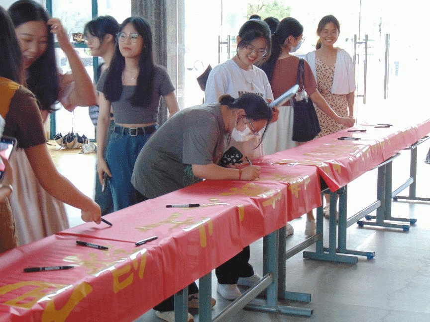 学子踏归程,转眼又是一年毕业季,2023届毕业生重返学校,齐聚校园。进入岩声楼一楼便能看见我院教师对毕业生们的祝福横幅和富有毕业气息的相关海报。熟悉的面孔、亲切的呼喊,一瞬间把毕业生们拉进校园生活的记忆中。她们在“廉洁自律,爱岗敬业,永葆教育初心,争做新时代四有好老师”的横幅上签下了自己的名字,一笔一画承载着这三年的青春年华,将不舍与记挂封存在这条横幅上。