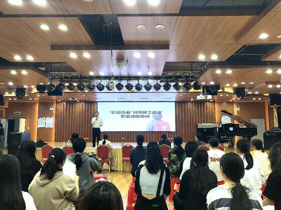 工作室负责人对前期工作情况进行介绍,强调了职业规划及职业能力的重要性,及模拟面试活动的安排计划。接着,三位学生代表分别从歌舞表演、故事讲述、歌曲弹唱三个方面依次上台模拟教学展示。她们分别通过生动的肢体、动听的歌声、精彩的演讲和歌曲弹唱展示了娴熟的职业技能。展示结束后指导老师进行点评指导和总结,他们表示自我介绍和职业能力展示是面试最重要的两个内容,要求同学们重视语言和职业能力的提升。
