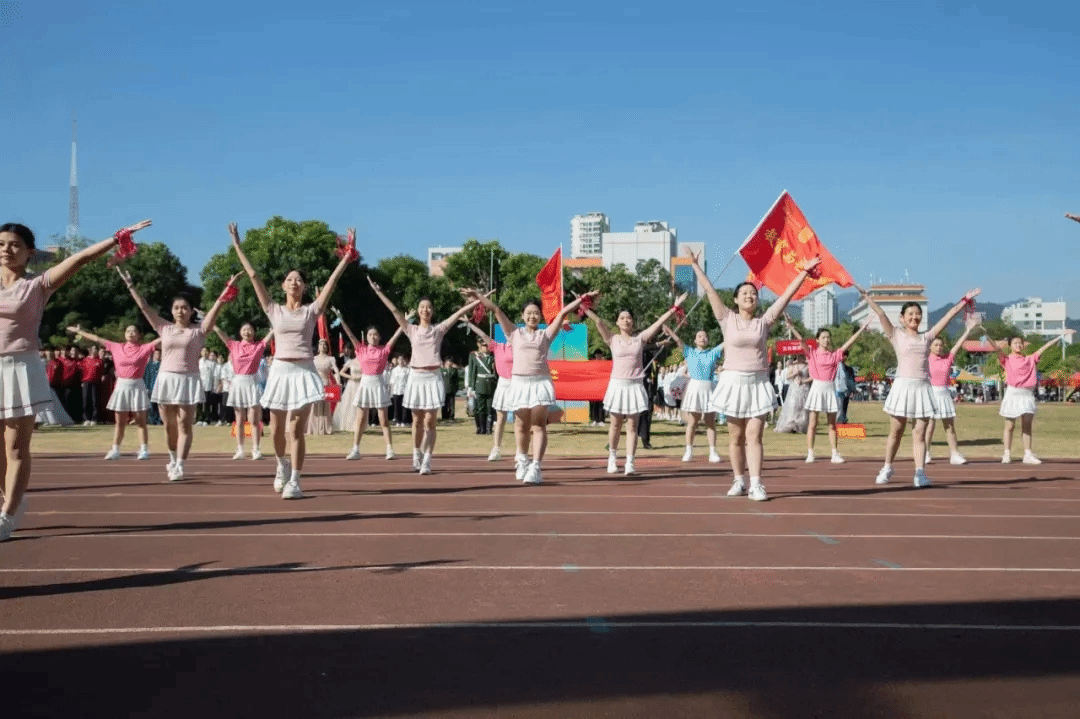 开幕式上,红旗飘扬,仪仗队代表方阵踏着整齐的步伐,奏响激昂的运动乐章。随后,教育与艺术学院运动方阵的同学们迈着青春的步伐、喊着气势恢宏的口号、穿着靓丽的衣裙、跳起青春的活泼舞姿,在绿茵场上展现了我院学子朝气蓬勃的风采面貌。