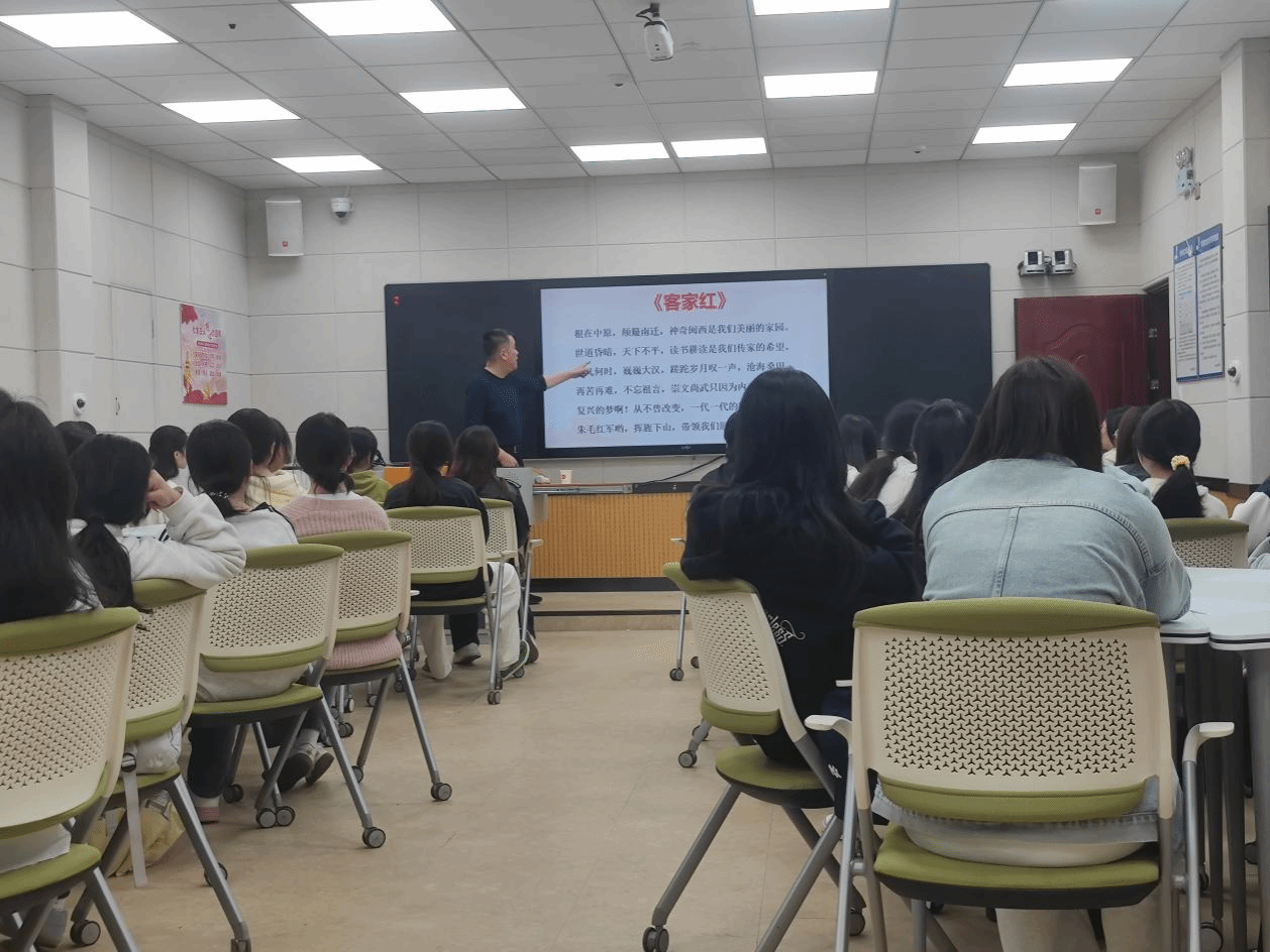 2024年11月24日,一场别开生面的歌曲创作分享活动在望云楼306公共教室开展。校党委书记卢伟耀教育与艺术学院的同学们一同分享歌曲《客家红》的创作故事。