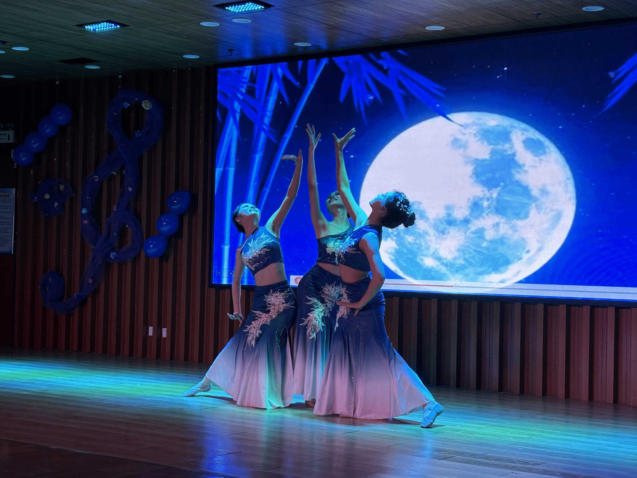 晚会在活力四射的开场舞中拉开帷幕,四位同学热情洋溢的表演瞬间点燃了现场气氛。随后,朗诵者以沉稳的嗓音朗诵《生命列车》,引领听众搭上时光专列,于岁月轨道感悟生命起伏;《浏阳河》的音符如潺潺溪流,从指尖倾泄而出,老师和同学们仿佛穿越到了美丽的浏阳河畔,感受着那里的自然风光和人文风;《泉边》的旋律悠悠响起,演出的同学身着绚丽筒裙,轻盈移步至台中,仿若漫步于林间泉畔,将傣族风情与泉边的灵动诗意展现得淋漓尽致。彩光聚焦,台下观众也沉浸其中,掌声、欢呼声此起彼伏。在演出的尾声,22级表演艺术的同学们带来舞蹈《像你这样的朋友》,抬手投足间尽是默契,笑容灿烂,用舞姿诠释青春活力,共同迎接新年的到来,迈向人生新征程。
