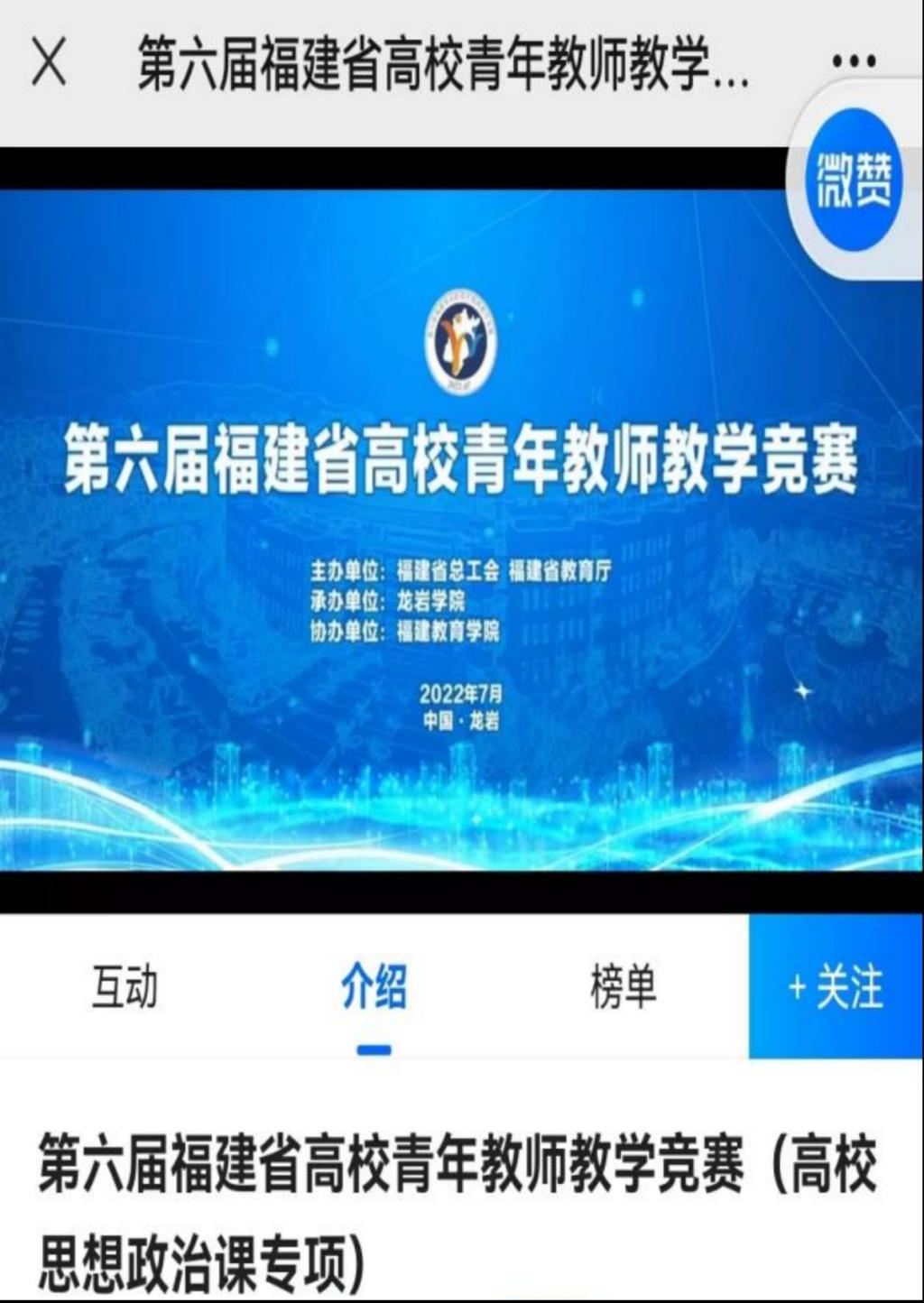据悉,本次青年教师教学竞赛,是由福建省总工会、福建省教育厅主办,由龙岩学院承办,28所福建省本科院校青年教师团队参加了此次竞赛。