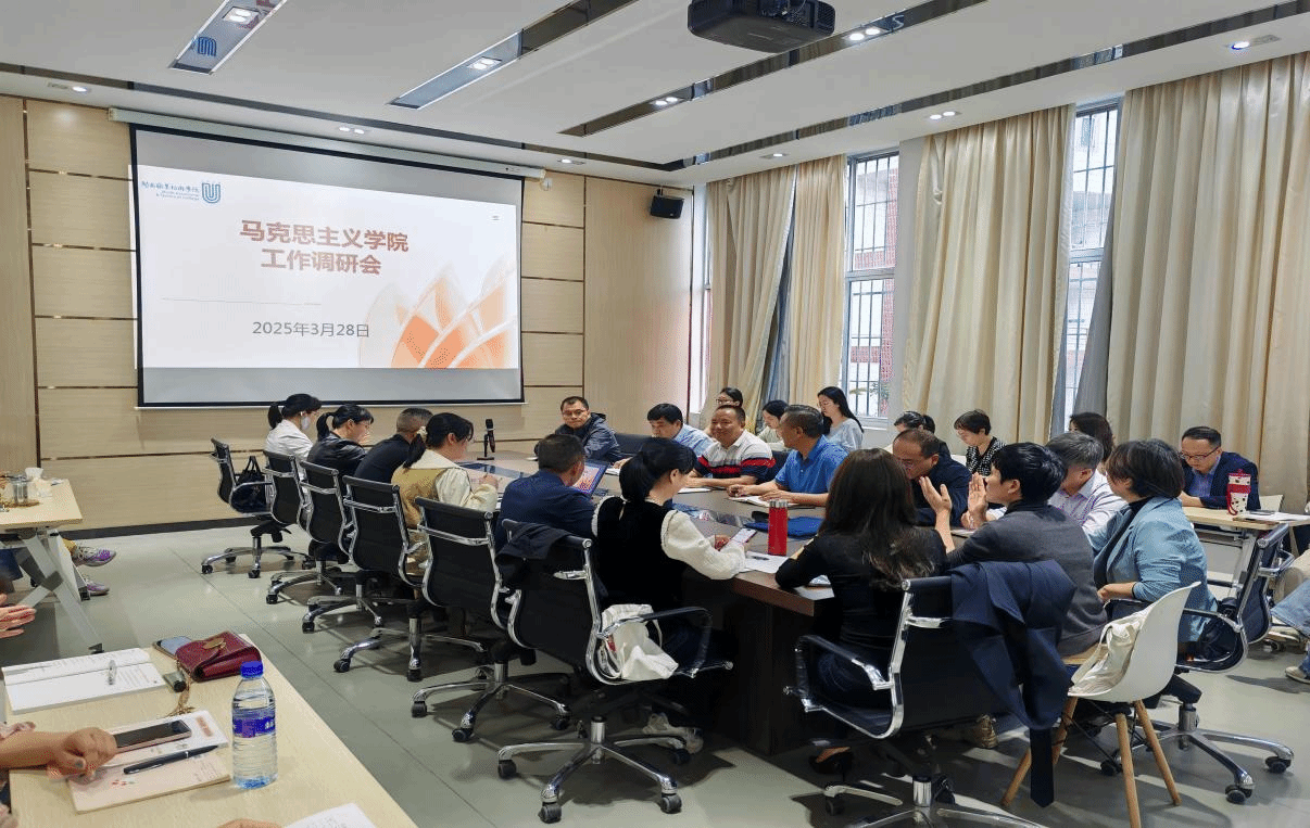 3月28日,马克思主义学院2025年春季学期“形势与政策”集体备课会在成功图书馆一楼会议室举行。校党委副书记林伟能到会指导并就马克思主义学院的工作开展调研。会议由马克思主义学院院长郭舜主持,全体专职思政课教师和宣传统战部、教师工作处、学生工作处以及信息工程学院党委负责人一并参加。