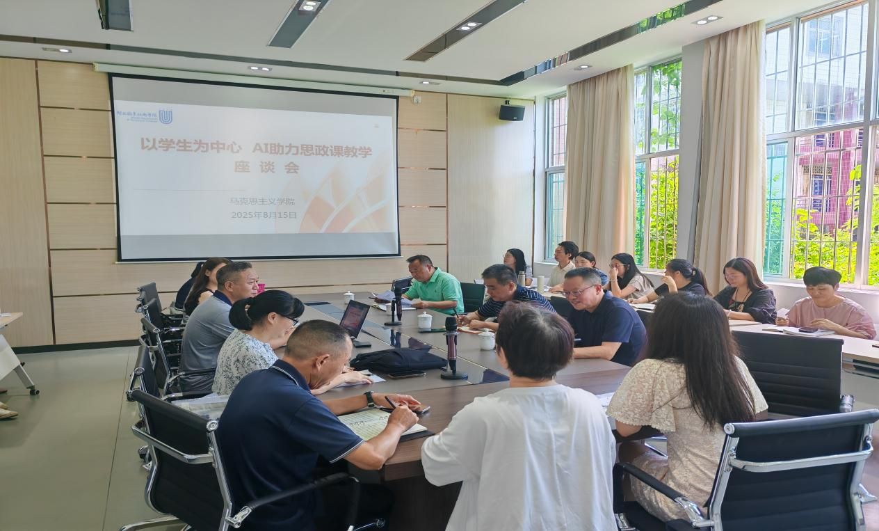 8月15日上午,马克思主义学院召开“以学生成效为中心,AI助力思政课堂教学,做好示范、引领、陪伴”专题研讨会。校党委书记卢伟耀、校长梁俊平、校党委副书记林伟能出席会议,学院全体教师参与研讨,共同为思政课教学创新与发展建言献策。