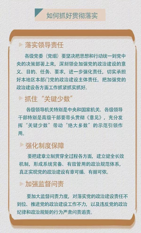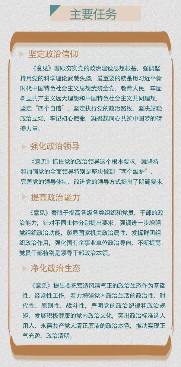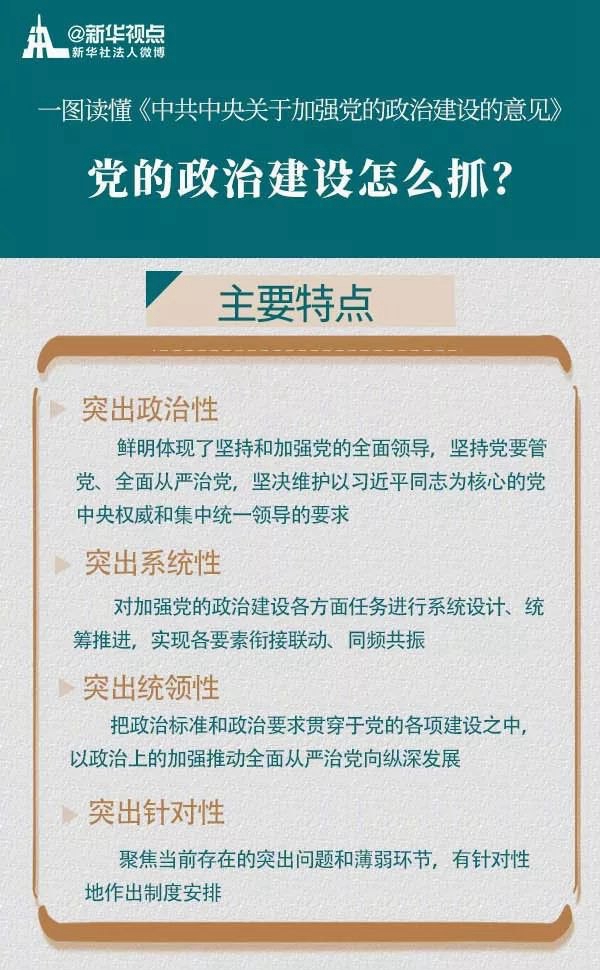 党的政治建设是党的根本性建设,决定党的建设方向和效果。近日《中共中央关于加强党的政治建设的意见》发布。意见有什么特点?加强党的政治建设有哪些主要任务?如何抓好落实?