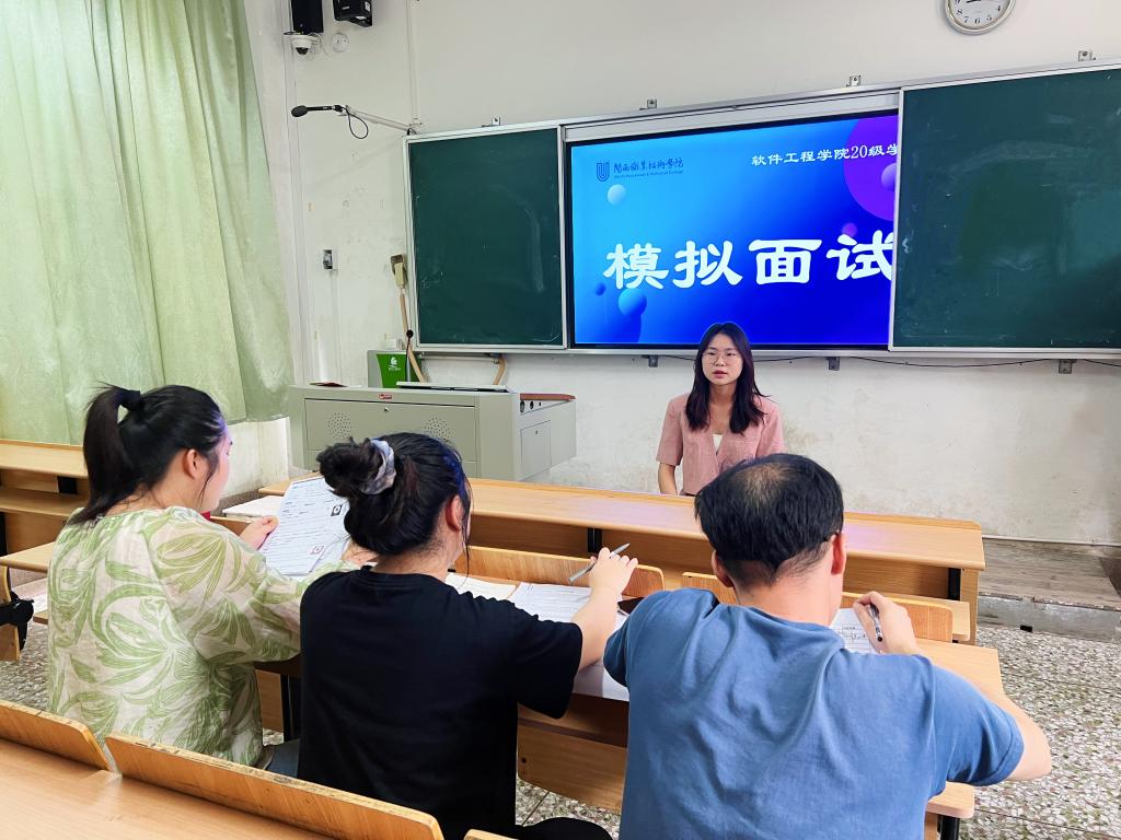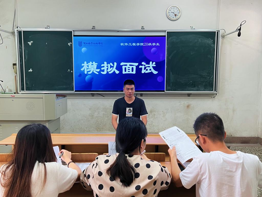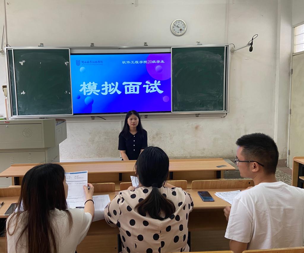 2020级学生实习就业前夕,为了给同学们提供认识社会、认知职场、展示自我的平台,帮助同学们做好求职准备,使同学们切身感受招聘现场,提高应聘技巧,8月1日至8月5日,软件工程学院在大二职业素养课程面试礼仪、面试技巧等课程学习的基础上,举办了多对一模拟面试。
