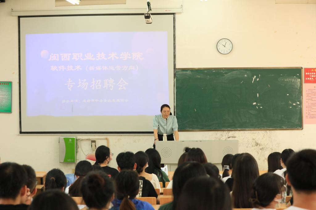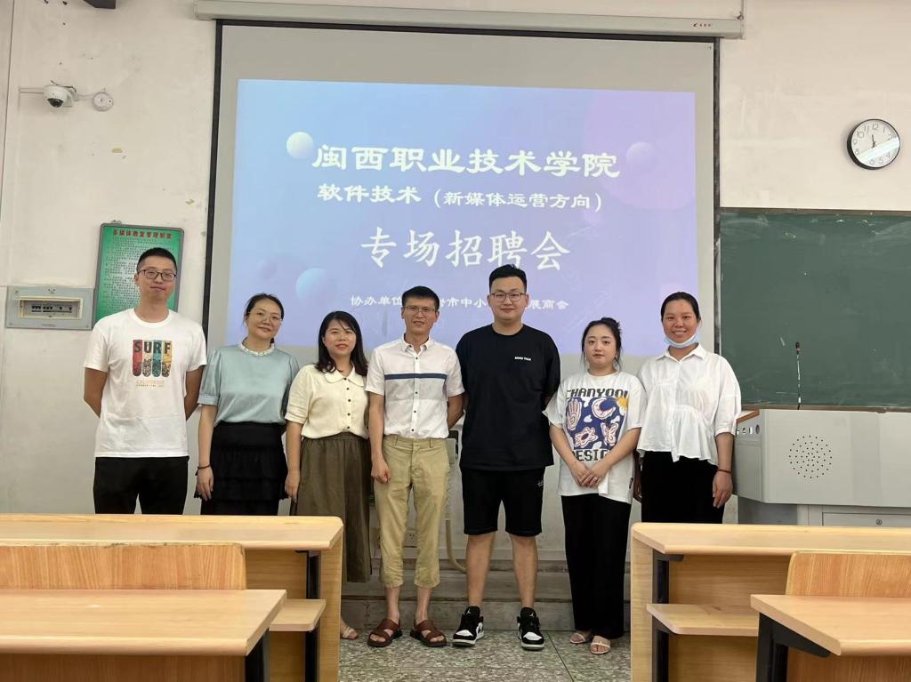 为强化校企双环境育合作育人,搭建用人单位与高校毕业生的双向交流平台,促进我院2023届毕业生高质量、充分就业,2022年8月1日,软件工程学院于良才楼教室举办“软件技术(新媒体运营方向)专场招聘会”,招聘会由龙岩市中小企业发展商会协办,软件工程学院2023届新媒体运营方向三个班同学参加,学工主任邱婷婷老师、团委书记李丽梅老师及2023届全体辅导员、班主任出席。