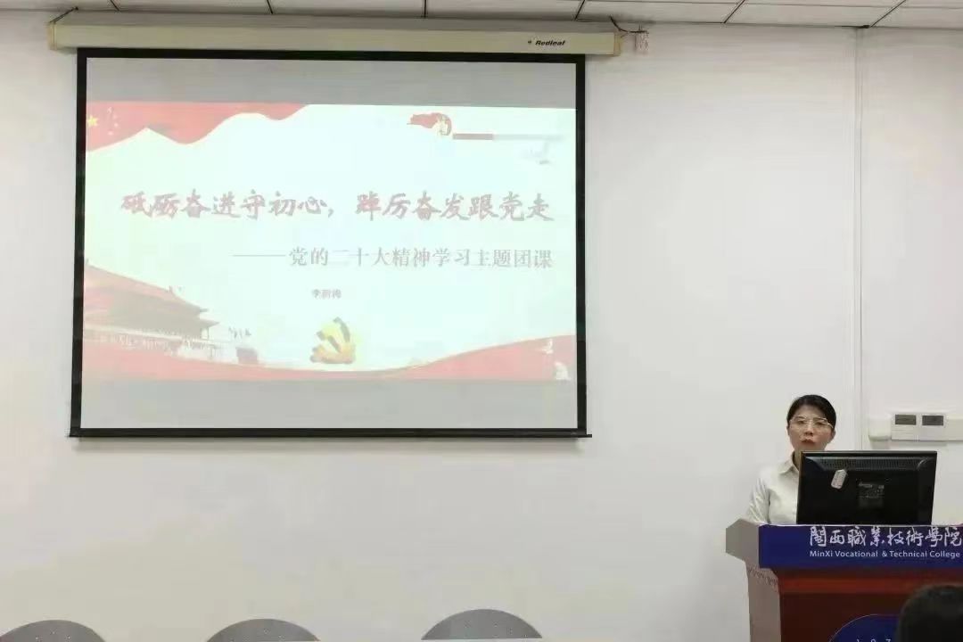 中国共产党第二十次全国代表大会,是在全党全国各族人民迈上全面建设社会主义现代化国家新征程、向第二个百年奋斗目标进军的关键时刻召开的一次十分重要的大会。为深入学习贯彻党的二十大精神,勉励广大青年学生坚定不移跟党走,11月20日下午软件工程学院团委书记李丽梅老师主持开展了“砥砺奋进守初心,踔厉奋发跟党走——党的二十大精神学习”主题团课,软件工程学院团委代表、各班级团支书参加此次团课学习。