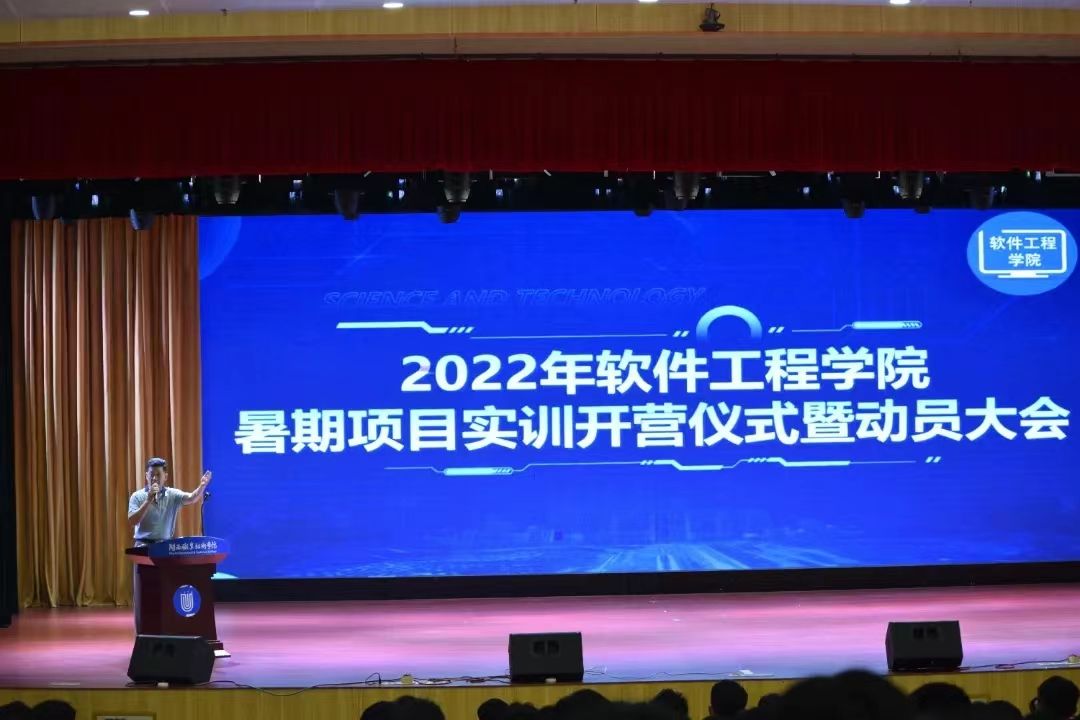 又是一年暑假,盼望已久的项目实训如期而至,同学们大一大二所学课程将在这个暑假合零为整,聚沙成塔。2022年6月27日上午,软件工程学院于大匠堂召开了2022年暑期项目实训开营仪式暨动员大会,20级共412名学生及各专业老师、辅导员参加大会,会议由吴晨曦主持。