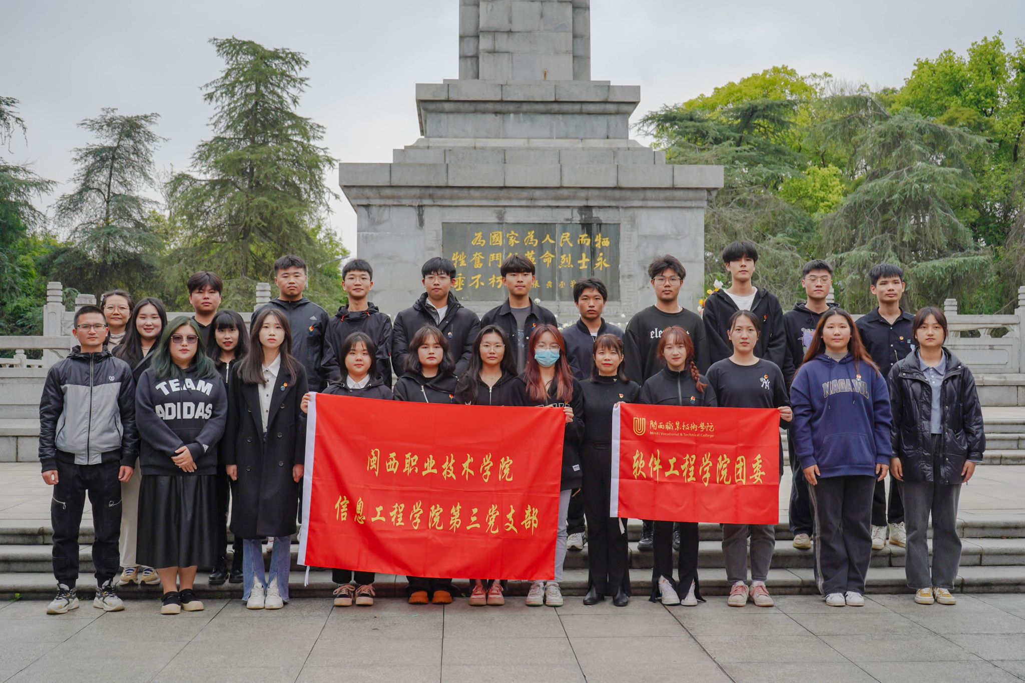 在清明节即将来临之际,为缅怀先烈、寄托哀思,3月28日下午信息工程学院第三党支部、软件工程学院团委组织青年团员及全体辅导员于闽西革命烈士陵园开展祭扫活动。 活动分为奏唱国歌、行默哀礼、敬献白花、团委老师发言、入党积极分子代表发言、重温入团誓词等环节。祭扫活动结束后,全体人员列队前往闽西革命历史博物馆参观学习。