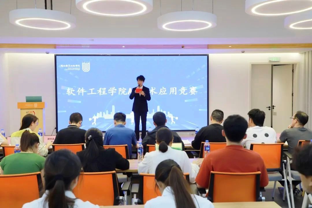 软件工程学院于2024年4月7日~4月18日举办了“匠心·‘职’引”AI技术应用竞赛。比赛启动以来,全院共626名同学们通过个人或组队的方式加入比赛,共提交作品255份,涵盖文字类、图像类、音频类、视频类、软件类等,经过筛选,最终确定24组作品进入路演环节。4月18日晚,路演在万源楼龙标大学生双创孵化基地举行,选手们借助PPT,从作品内容、创作过程、作品意义等方面进行展示。此次竞赛的开展营造学习AI技术的浓厚氛围,提高教育教学成效和人才培养质量。