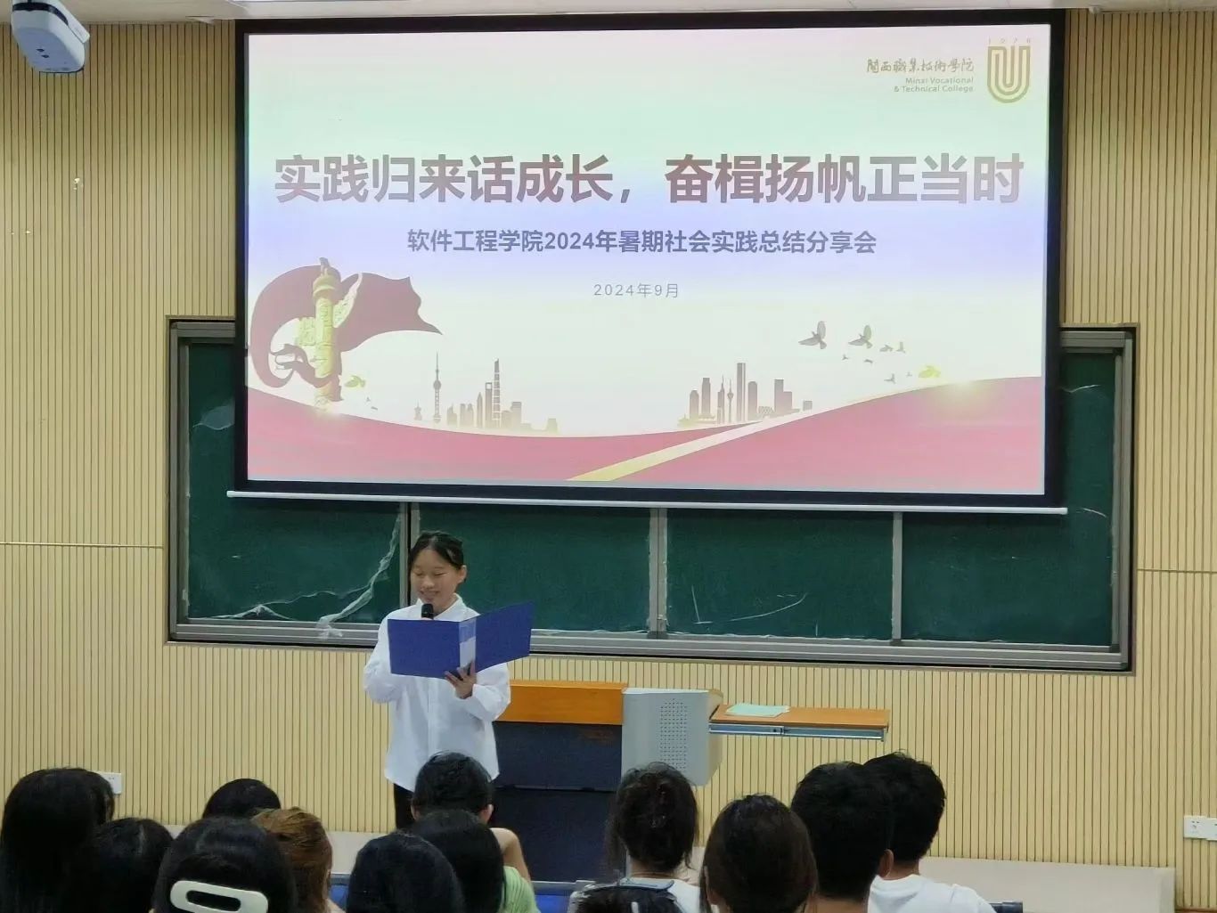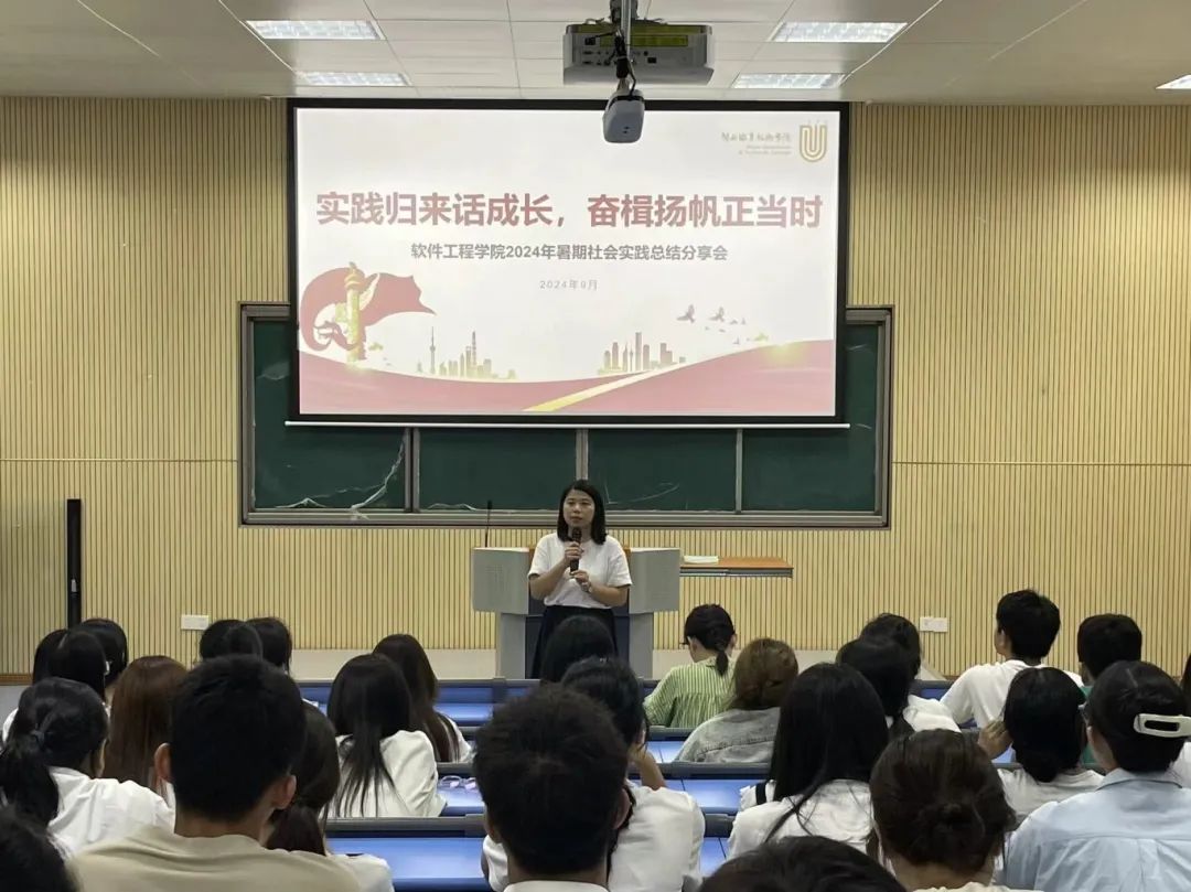 9月23日晚,软件工程学院团委在望云楼阶梯教室二开展“实践归来话成长,奋楫扬帆正当时”暑期社会实践总结分享会。交流会上,11支院级优秀线下队伍、校级实践项目负责人、“返家乡”同学以及各支部团支书对暑期社会实践进行汇报和分享。