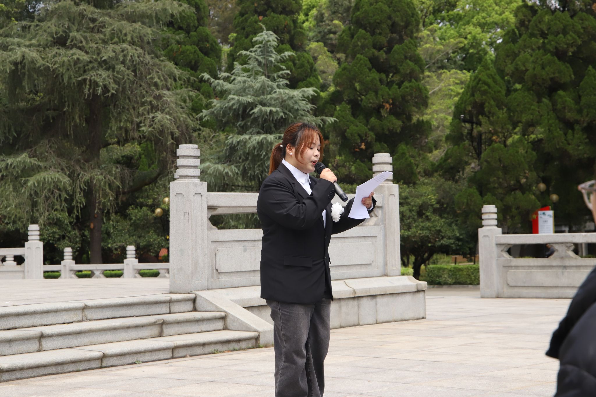 在庄严肃穆的烈士陵园中,师生们齐唱国歌、集体默哀,并向革命烈士敬献鲜花,表达对先烈的深切缅怀。少数民族学生代表丁杨悦在发言中号召大家铸牢中华民族共同体意识,像石榴籽一样团结奋斗。团委书记李丽梅老师勉励全体团员赓续红色血脉,不负时代与人民。