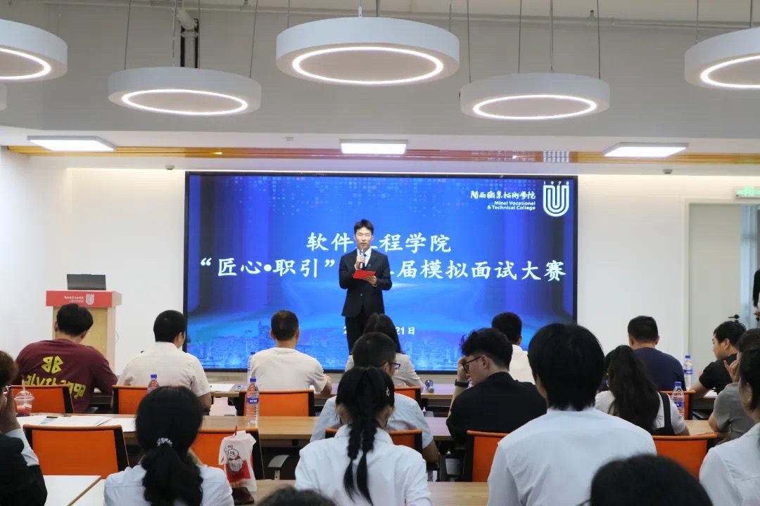 2025年5月至6月,软件工程学院举办了第二届“匠心·职引”模拟面试大赛,旨在帮助学生树立理性择业观,提升求职能力。大赛分为复赛和决赛两个阶段,吸引了37名选手参与。经过简历筛选和复赛角逐,19名选手晋级决赛。