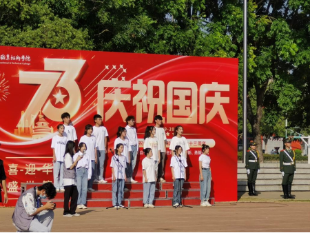 升国旗活动在大家齐声高唱《歌唱祖国》中落下帷幕。我们生在红旗下,长在春风里,没有祖国的强大,就没有我们现在的幸福生活,祝伟大的祖国生日快乐!