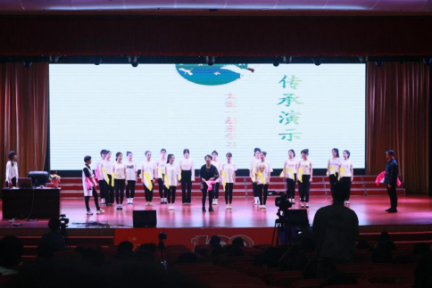 黄淑霞老师以她独特的戏腔来了一段简单的自我介绍,一下子就吸引了台下观众的注意力。紧接着,她以采茶灯的概述、音乐唱词、茶婆白、角色、道具、常用队形、近三百年传承所产生的社会效应等方面为同学们普及采茶灯的历史渊源。在讲到音乐唱词的时候,她更是现场唱了《正采》和《倒采》小段,令在场的师生们无不感到赏心悦目。