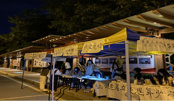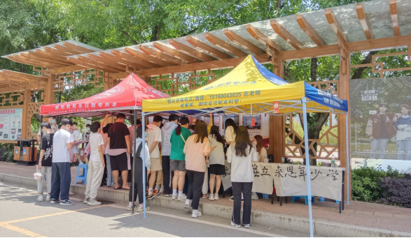 2022年4月23日,由劲松书画斋举办的“学少年恩来,立崛起壮志”书法现场体验活动在文化长廊展开,现场吸引了300多位同学参与。