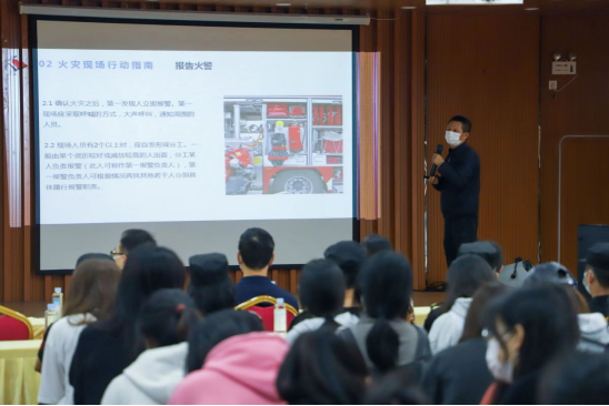 龙岩市住建局建设工程消防设计审查验收技术专家吕培炎(一级注册消防工程师)作了讲座。讲座以《发生火灾怎么办?》为题,从“牢固树立第一时间现场处置的理念”“火灾现场行动指南”“保障措施”等三方面,介绍认识和使用灭火器、第一时间灭火、第一时间报警、第一时间疏散、15分钟消防的时间观念等。讲座后进行消防演练。大家按照火灾逃生要领,捂紧口鼻,快速穿越“浓烟”撤离到指定集合地点,在安全区域进行集结和人员清点。