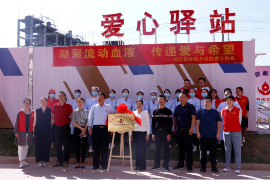 随后,黄丽平站长与刘路勇副校长一同为“无偿献血志愿服务合作共建基地暨爱心驿站”揭牌。现场师生们一同参与无偿献血与猜灯谜活动,展现了闽大人参与公益的使命感。